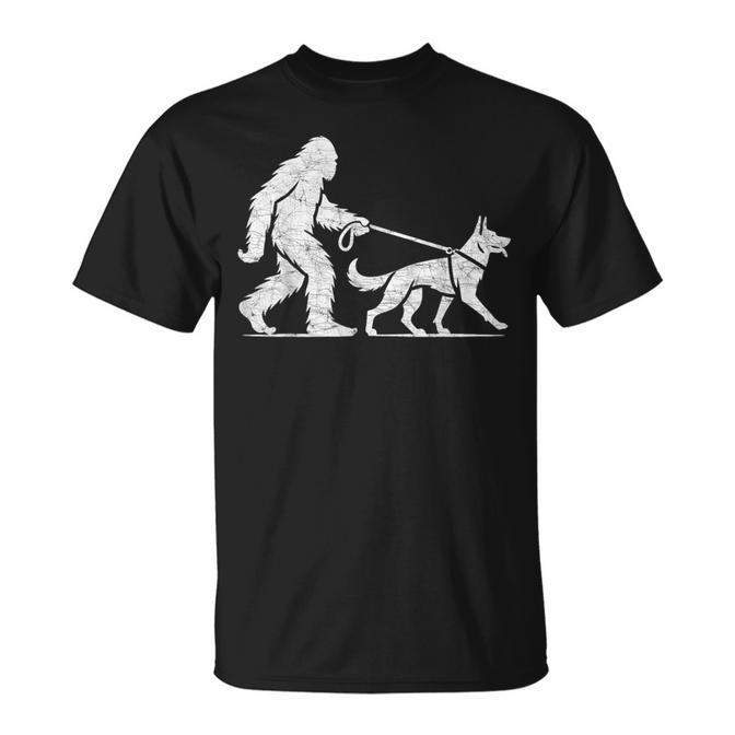 Bigfoot Walking German Shepherd Dog Lover Sasquatch T-Shirt