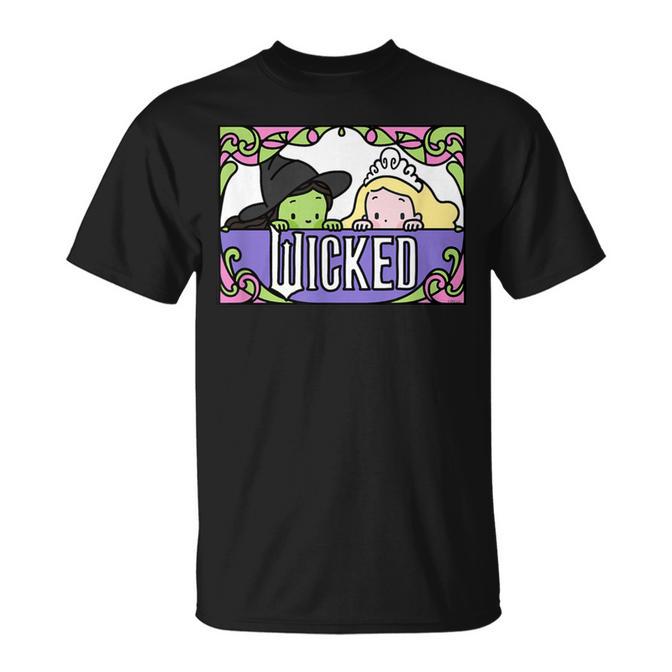 Wicked Elphaba & Glinda Peaking Playful Cartoon Style T-Shirt